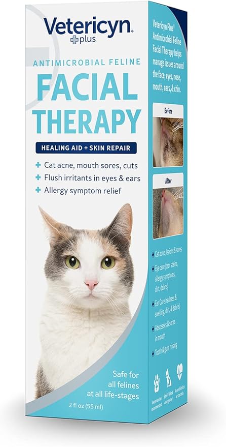 Vetericyn Plus Feline Facial Therapy | Healing Aid and Skin Repair for Different Cat First Aid Needs, Including Cat Acne, Cat Ear and Eye Problems. 2 Ounces