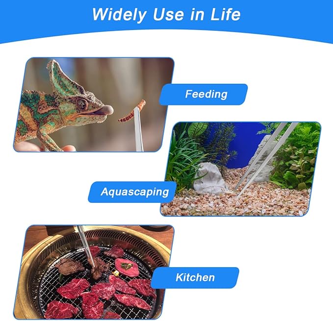 - Multi-Functions: Extra-long tweezers tools not only could help to plant, clean the aquarium, but also could as for feeding tongs for feed snake, lizard, spider, frog, scorpion, also could using in the kitchen for clip food, help cooking