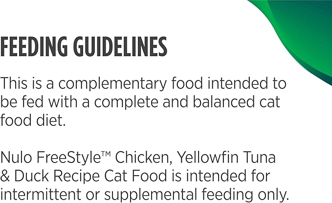 - CHICKEN, YELLOWFIN TUNA, & DUCK RECIPE - Nulo Freestyle Cat & Kitten Wet Cat Food Pouch with limited ingredients for maximum protein and nutrition contains only chicken, tuna, duck, and chicken/tuna broths for a healthy food complement, treat, or snack. Pack of 24, 2.8 Oz each.
