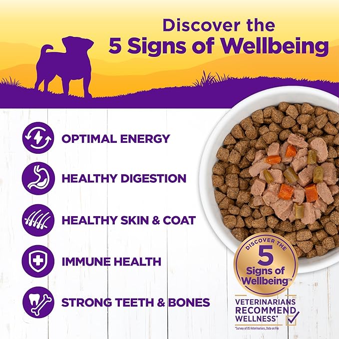 - ENJOY A LIFETIME OF WELLBEING: High quality proteins and antioxidant rich veggies are expertly balanced to deliver a complete diet packed with the nutrients your small breed dog needs to thrive