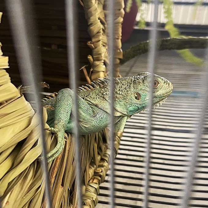 - Woven Grass Bed House completely enough length and width enable more kinds of animals to regard the pet mat as a wonderful place to chew and train their teeth. Chewing is a perfectly natural behavior for small animals and many small pets love to chew on wood, hay, straw and other organic materials. Even the birds love foraging on these mats, can be used as a chew toy that helps to wear her teeth down.