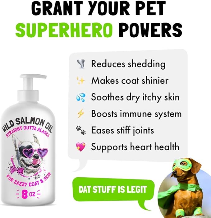 - Help your pet stay in great shape - the rich fatty acids found in Salmon Oil have been shown to support joint, heart, and immune function to keep your four-legged friend feeling lively and active every day, without the fuss.