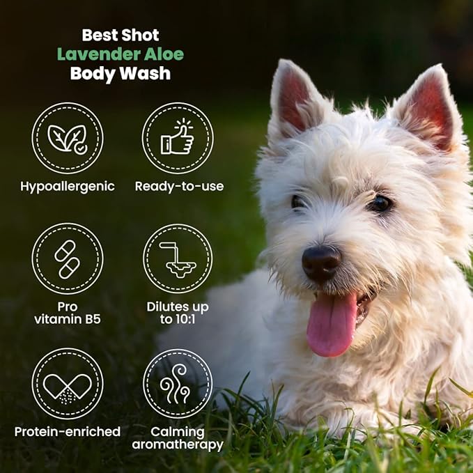 - Calming Lavender Fragrance: Infused with organic lavender oil, citric acid, and aloe vera extract, our pet grooming body wash provides calming aromatherapy and has a relaxing lavender scent