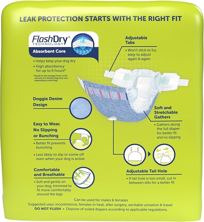 - CUSTOMIZABLE FIT: Adjustable & repositionable velcro tabs work just like a baby diaper to customize fit without sticking to fur or irritate dogs’ skin.