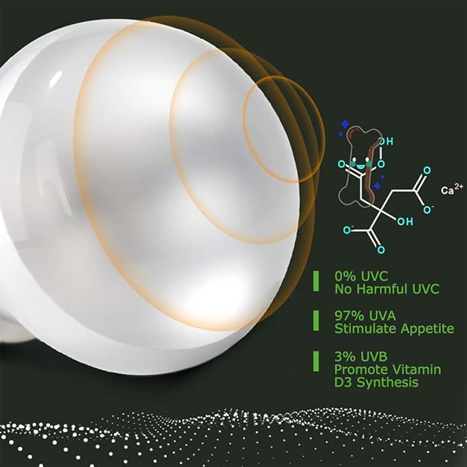 - KEEP YOUR REPTLES/PETS HEALTHY - The reptile bulb simulates the sun's rays to make your baby more comfortable. It compositions promote vitamin D3 synthesis to maintain healthy skin and bones for reptiles, fully absorb calcium; Infra-Red (Heat): provides the warmth which cold-blooded animals are used to in nature.