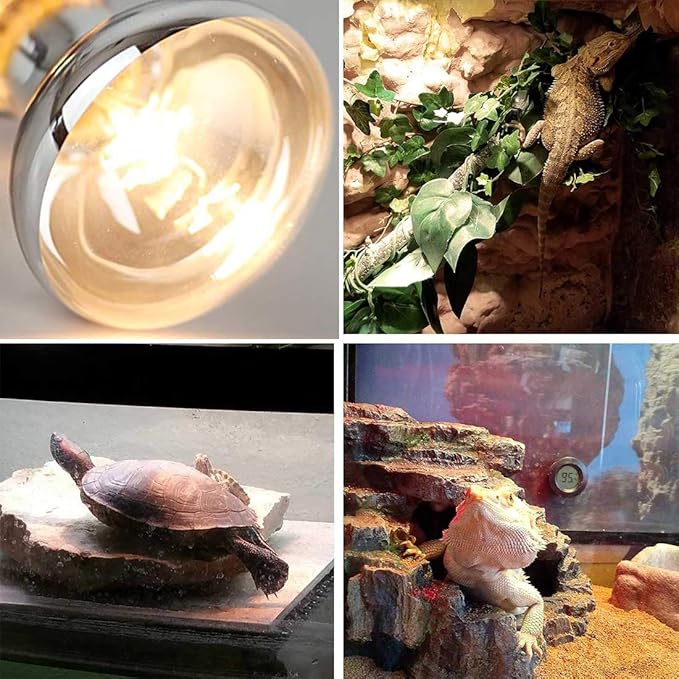 - SUITABLE FOR REPTILE & AMPHIBIAN - Our heat light bulb provides animals warmth & vitamin production necessary for health. Ideal for bearded dragons, tortoises, turtles, geckos, snakes (pythons, boas, etc.), iguanas, lizards, chameleons & more. An excellent reptiles bulb!