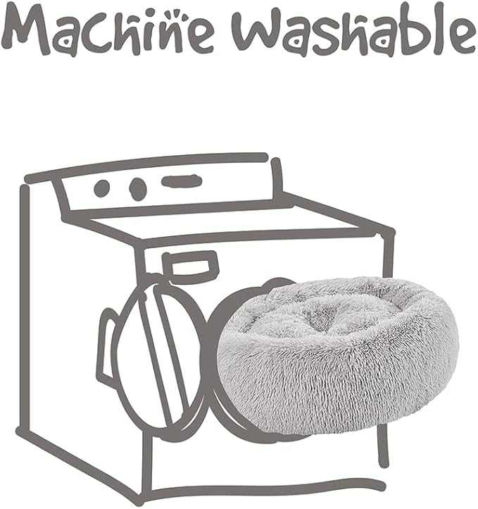 Friends Forever Donut Dog Bed Faux Fur Fluffy Calming Sofa For Medium Dogs, Soft & Plush Anti Anxiety Pet Couch For Dogs, Machine Washable Coco Pet Bed with Non-Slip Bottom, 30"x30"x7" Grey