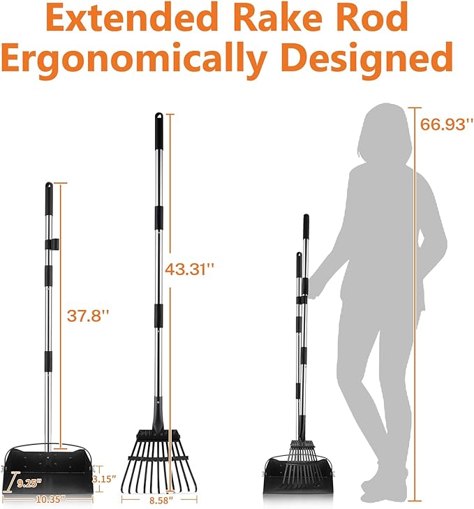 - 【Ergonomic Design Saves Your Back】Effortlessly clean without bending! 43.31inch extended rake (13% longer than standard) . Perfect for seniors/pregnant pet owners - protect your waist health while cleaning.
