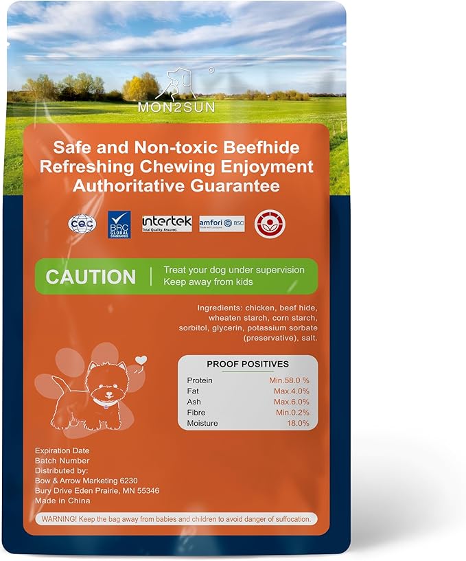 - [Beneficial for Your Dog] Chicken dog rawhides give your dog’s enjoyable chewing experiences and support canine dental health. It is beneficial for your dog to have fewer tartar and plaque.