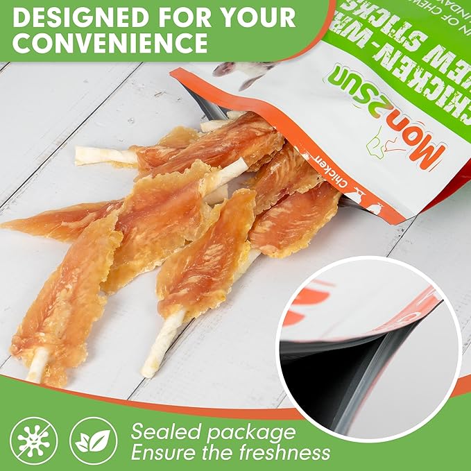 - [Natural Ingredients] Real chicken breast is used to make these chicken-wrapped rawhide sticks, which are wrapped around a rawhide stick. It has low-fat, high protein twists, is completely natural.