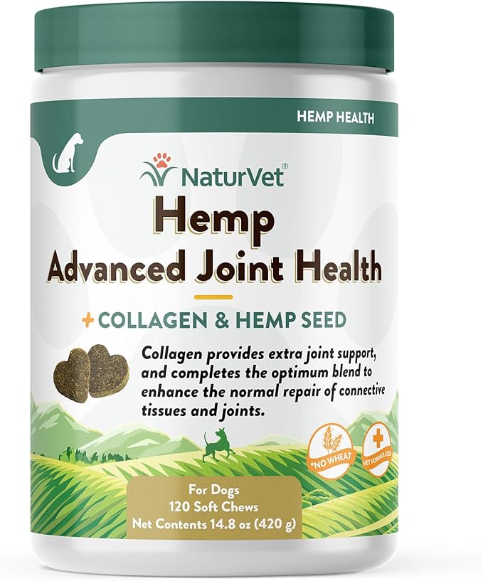 NaturVet Hemp Advanced Joint Health Dog Supplement Soft Chews –Helps Support Joint Health in Dogs – Includes Hemp Seed, Collagen, Glucosamine, MSM, Chondroitin, Omegas – 120 Ct.