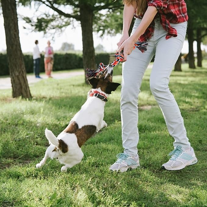 - SET OF 4 DOG ROPE TOY: Each of these rope toys for dogs serves a unique purpose. One is perfect for playing tug, another is great for teething and gnawing, one is designed for tossing, and another is a rope "bone" ideal for fetch. Perfect for keeping your dog entertained in a variety of ways