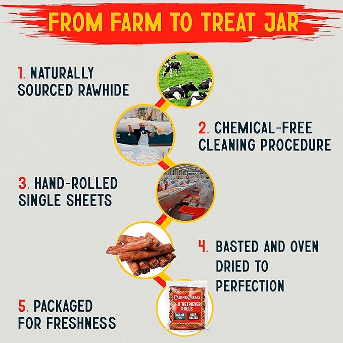 - SOURCED WITH LOVE - After 25 years, our family-owned manufacturer prides itself in continuing to hand roll each dog rawhide bones for large dogs while sourcing the highest quality beef to produce large rawhides for dogs made in North America