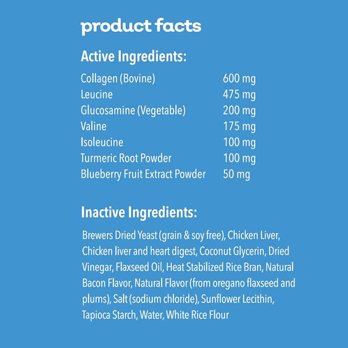 - INCLUDES GLUCOSAMINE - A key ingredient known for its ability to support joint health, promote flexibility, ensuring improved mobility and comfort for your dog.