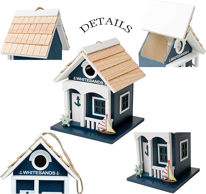 - DIMENSIONS - 7.1" x 7.1" x 9.1" Hanging wooden birdhouse, no assembly required.