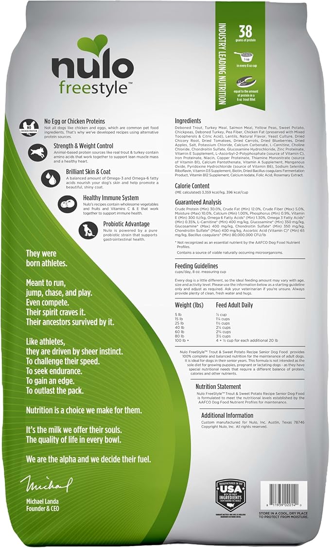 Nulo Freestyle All Breed Senior Dry Dog Food, Premium Grain-Free Dog Kibble with Healthy Digestive Aid BC30 Probiotic and Chondroitin Sulfate for Hip & Joint Support 26 Pound (Pack of 1)