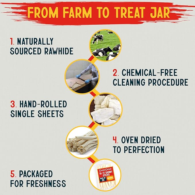 - ๐ณ ALL NATURAL DOG TREAT single-ingredient dog chew made from 100% beef. Canine Chew's rawhide is all-natural preservative-free, chemical-free using beef that are hormone and antibiotic free creating the BEST dog treat for your pup! Nothing artificial, all-natural hand-rolled rawhide dog snacks