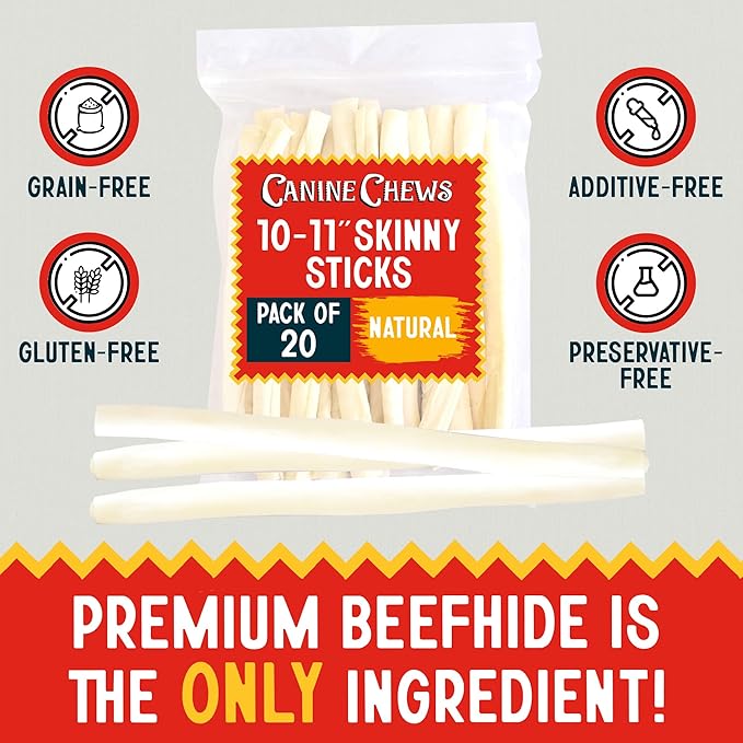 Canine Chews 10-11" Retriever Stick Rolls Rawhide for Dogs Skinny Sticks for Small Aggressive Chewing Dogs (20 Pack)