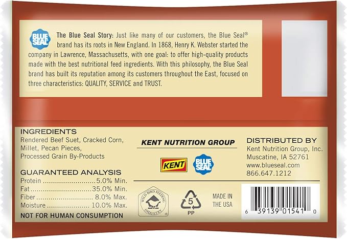 - Our Suet Brings All The Birds To The Yard - Our Blue Seal suet cakes are perfect for generating the extra energy needed to fuel reproduction in the spring and to keep birds warm in the winter months. Great nutrition for a variety of our favorite birds, Woodpeckers, Cardinals, Siskins, Sparrows, Juncos, Blue Jays, Nuthatches, Chickadees, Titmice, and the Northern Flicker, oh my!