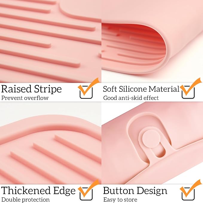 - [Space Saving] 1 pink silicone pet food mat per pack. The design of the rectangle shape and product size makes it not occupy too much space for you. Available in 3 colors. Suitable for small and medium dogs and cats. Best choice for pets.