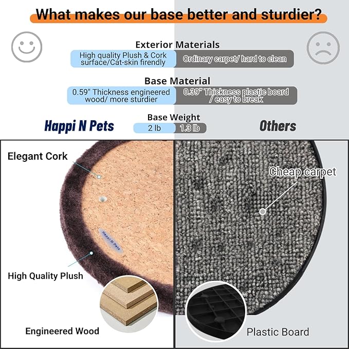- 【Heavy Duty Base】The base is up to 0.59 inches thick, and it is sturdy and heavy (2 lbs), which prevents the cat rubbing post from toppling over when it is seated on the ground