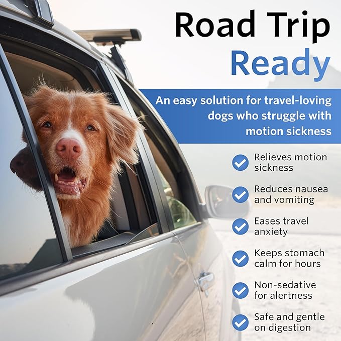 Anti-Motion Sickness and Nausea Relief for Medium Breed Dogs, Relief for Disorientation and Dizziness, 20 Tablets