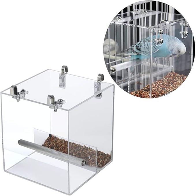 Automatic Bird Feeder No Mess Bird Cage Pet Feeder Seed Food Container for Parakeet Canary Cockatiel Parrot Finch Canary Acrylic (8.3 x 8.3 x 8.3 inch)