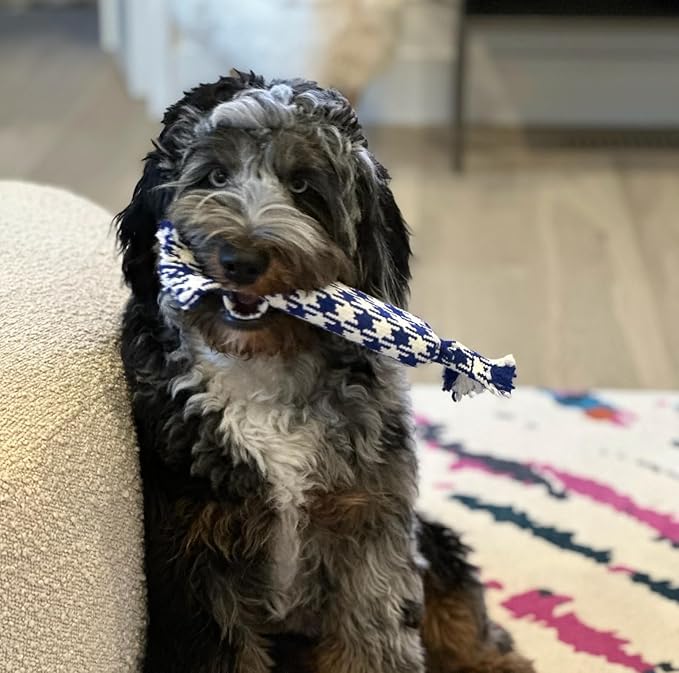 rocket & rex Dog Rope Tug Set for Small Breeds, Includes Ropes with Rubber Interiors, a Squeaker & Crackle Lining, Reduces Destructive Chewing & Anxiety (Pack of 4)