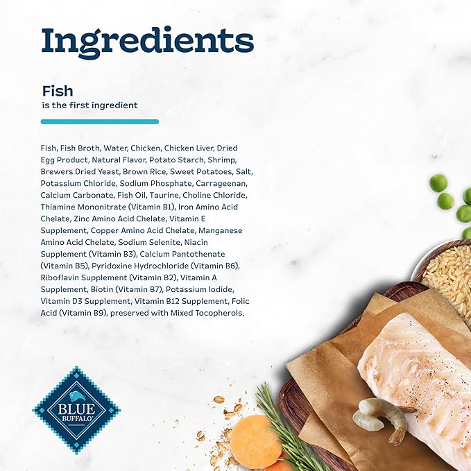 - REAL FISH FIRST: This Blue Buffalo cat food is made with real, high-quality tuna, chicken, or fish as the #1 ingredient