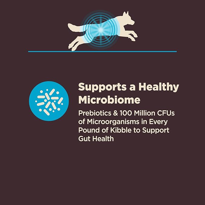 - SUPPORTS HEALTHY SKIN AND COAT: Keeping the microbiome in a healthy balance helps protect against excessive inflammation or itchy skin. The inclusion of protein and omega fatty acids in the kibble ensure your dog’s coat stays lustrous and soft.