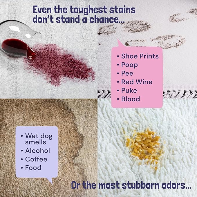 - Mighty Stain Buster: Tackle old stains with our super concentrated carpet cleaner liquid that packs a punch against dirt. Just a bit goes far, making it the go-to carpet stain remover for old stains without any harsh odors