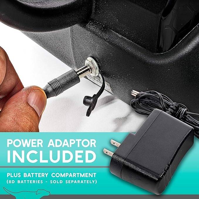 - POWER ADAPTER INCLUDED: Play with no end in sight. No batteries needed. Just plug and play. Also features a battery compartment for [8] D size Alkaline Batteries (sold separately)
