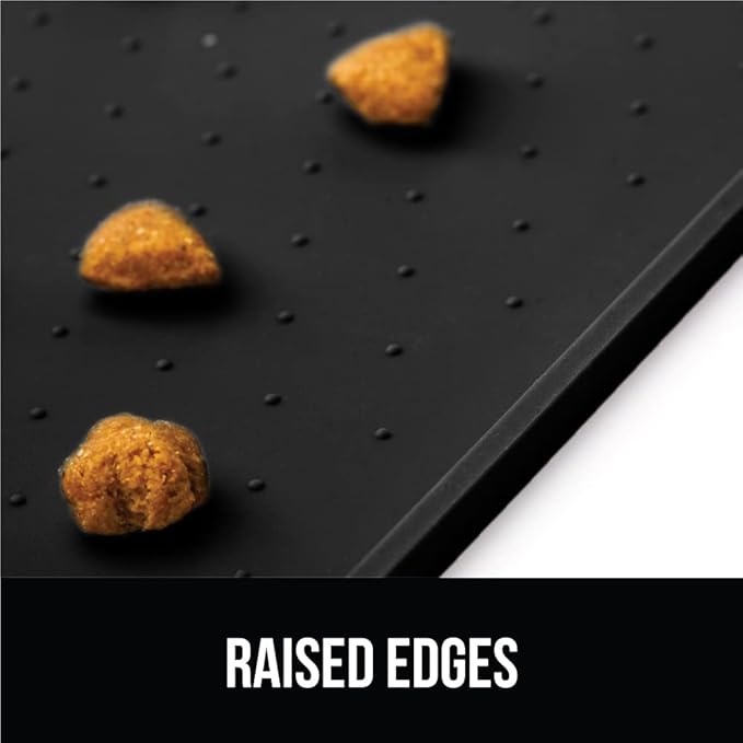 GORILLA GRIP 100% Waterproof Raised Edge BPA Free Silicone Pet Feeding Mat, Dog Cat Food Mats Contain Spills Protects Floors, Placemats for Cats and Dogs Water Bowl, Pets Accessories 28x18 Black