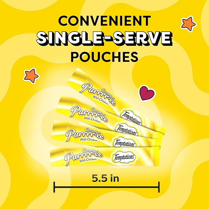 - Cats Lose Their Cool: Temptations Creamy Puree Wet Cat Treats deliver irresistible chicken flavor in a squeezable, creamy puree your cat will come running for