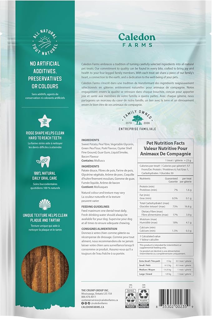 Caledon Farms Plaque Busters with Bacon Dog Treats: Grain Free, Gluten Free, No Additives, Colors or Preservatives, Brown 8 Count (Pack of 1)