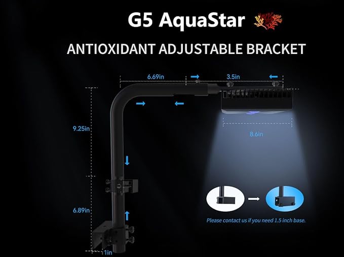 - FLEXIBLE ALUMINUM AQUARIUM STAND - Special Anti-rust design flexible full aluminum with oxidation bracket suitable for different size of coral tanks. Oblate base efficiently increase stressed area and protect coral reef tank well. Ideal coverage of G5 coral light is 20-28 inch. Tank glass thickness: 0.2-1.0 inch