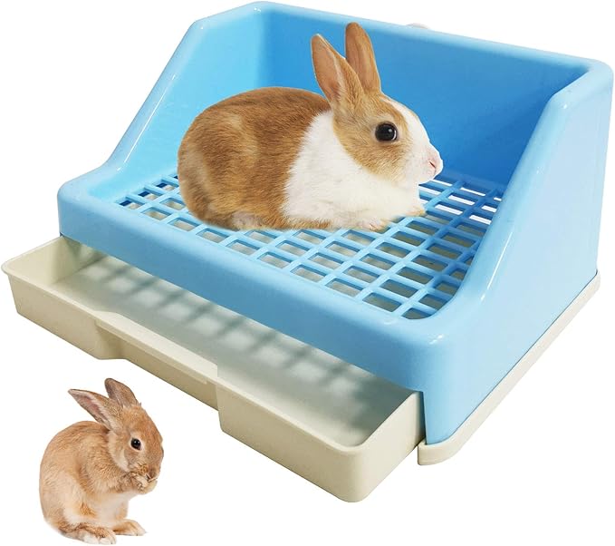 kathson Rabbit Litter Box Trainer Small Animal Potty Corner Toilet with Drawer Pet Cage Pan Litter Bedding Box for Adult Guinea Pig Hamster Bunny Ferret Galesaur Mouse Squirrel (Blue)