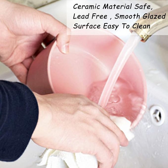 - Ceramic pet bowl Size and Capacity 2 Pink Cat Dog Bowls : 1.7 cups(400ml, 5.1 Inch, 13.5 Fluid Ounces) capacity in each bowl, Suitable for different breeds of kittens and adult cats, as well as small dogs. Perfect for holding dry wet food and can food snack. also great no spill water bowl for cat or small dog