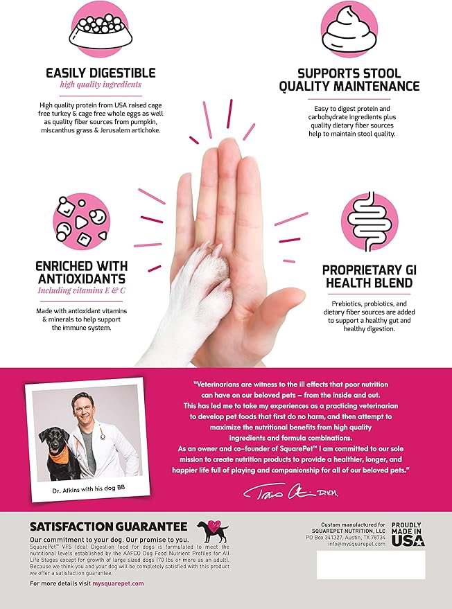 VFS Canine Ideal Digestion Formula, Cage Free Turkey, Whole Eggs, Pumpkin, Brown Rice 22 lbs