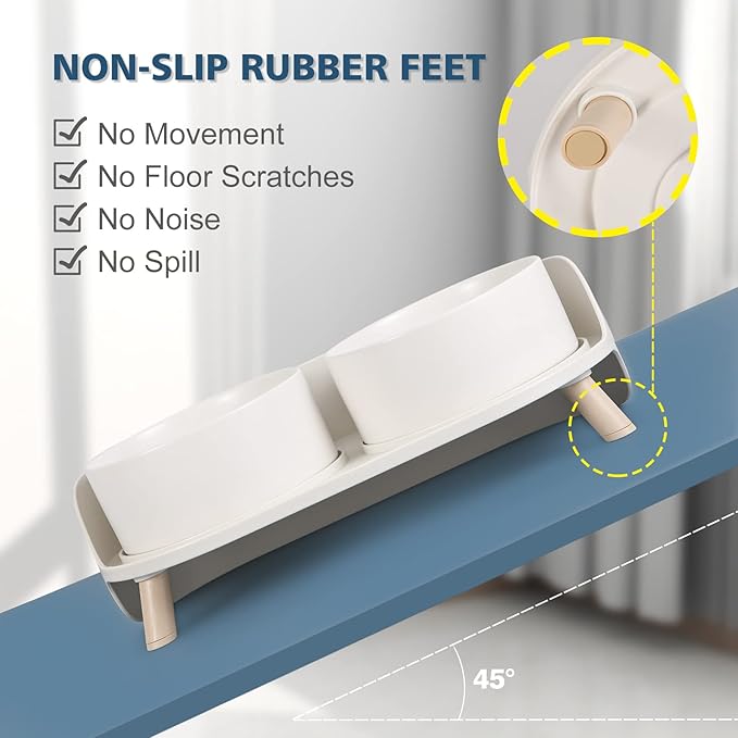 Raised Cat Food and Water Bowl Set - Elevated Ceramic Dishes With Non-Slip Stand and Splash Guard for Small Dogs - 2 x 480 ML (16.2 OZ)