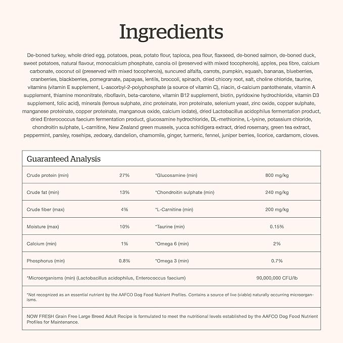 Now Fresh Grain-Free Large Breed Dry Dog Food with Turkey, Salmon & Duck, Premium Kibble for Adults Made with Real Meat & Fish, Chicken-Free, Glucosamine & Chondroitin for Healthy Joints, 25 lb Bag