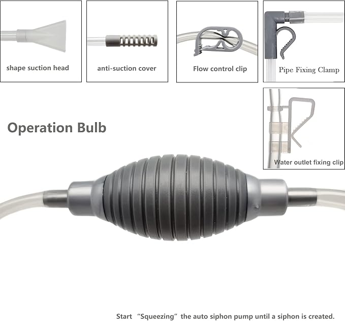 - 3.suitable for aquarium water changer and Fish Tank Cleaning under 10 Gallons of water, and meticulous aquarium cleaning above 10 Gallons of water. It is ideal for 5 Gallon Fish Tank.