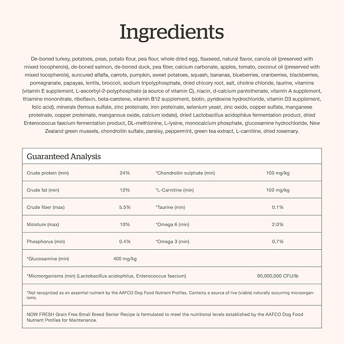 Now Fresh Grain-Free Small Breed Senior Dry Dog Food with Turkey, Salmon & Duck, Premium Kibble Made with Real Meat & Fish, Chicken-Free, Added Glucosamine & Chondroitin for Healthy Joints, 3.5 lb Bag