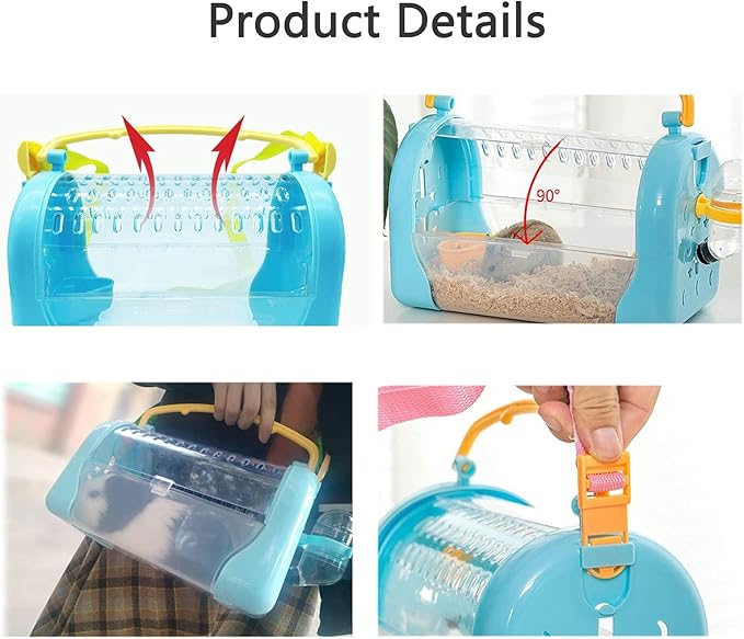 - 【Breathable Design】The high quality plastic used in the hamster cage is non-toxic and odorless. And the ventilation design at the top of the transparent plastic hamster cage increases air circulation,allowing your hamster to breathe smoothly and freely,Travel is more reassuring, meeting the natural exploration and hiding needs of hamsters.