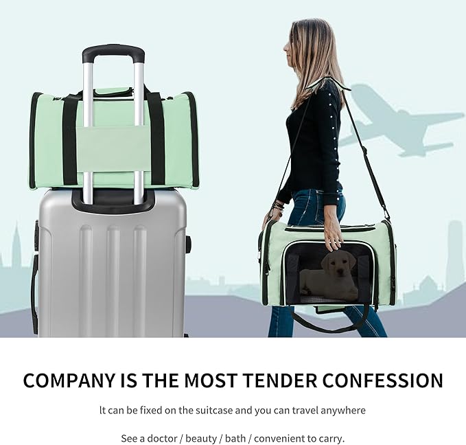 - DESIGN: Lightweight ergonomic design offers comfort and convenience for both owner and pet during indoor/outdoor activities. Adjustable shoulder strap and luggage handle help you with hands-free carrying, making it a safe and convenient pet carrier bag for your travel.