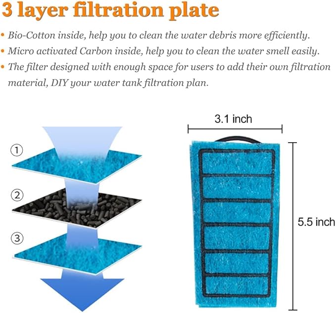 - ★【Features】:Quick and easy installation, Waterfall design to help water aeration, large size filter plate, blocking water debris, removes impurities, overall filtration idea. Minimum Water Line :1.9 inch (Low water line is suitable for amphibian)