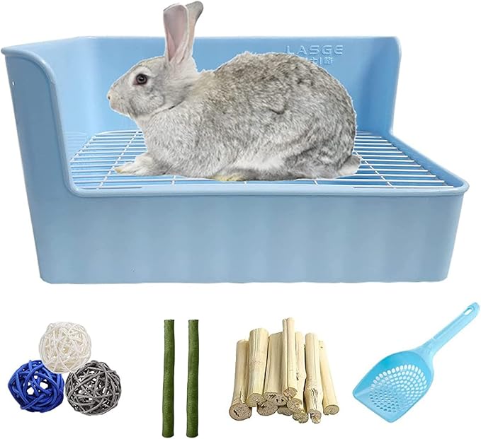 Tfwadmx Rabbit Litter Box Toilet Bunny Corner Litter Pan Pet Toilet Potty Trainer with Scoop Rabbit Chew Toys for Guinea Pigs Galesaur Chinchilla Ferret Small Animal (Blue)