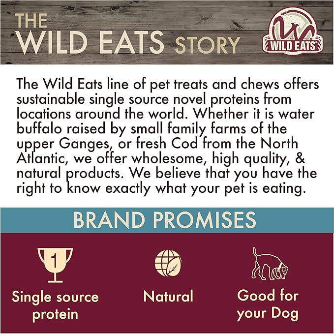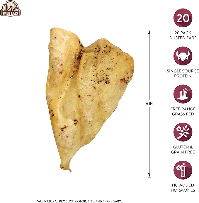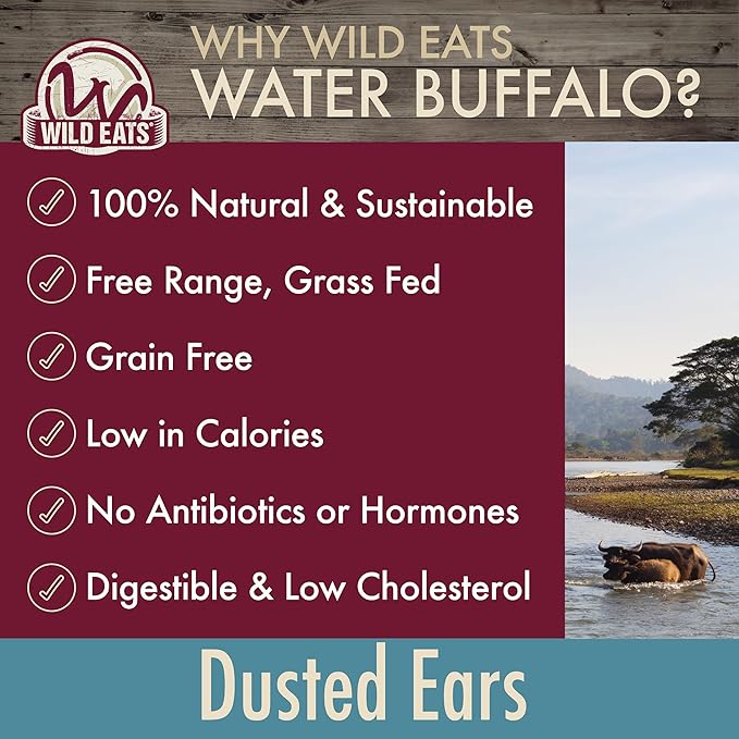- SUPERIOR QUALITY: Our Wild Eats Pizzle dusted Water Buffalo natural ear dog treats are 100% sustainable and processed in human grade facilities with the highest level of standards.