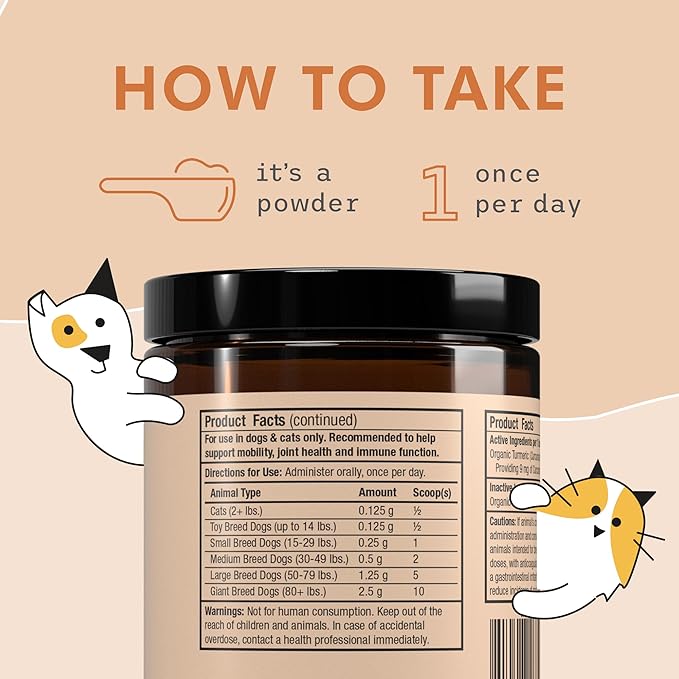 Bark & Whiskers Organic Curcumin, 2.64 Oz. (75 g), 300 Scoops, Promotes Mobility & Joint Health, Veterinarian Formulated, Non-GMO, Certified USDA Organic, Dr. Mercola