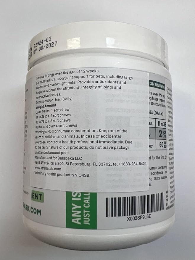 - Lasting Health: Regular use of our dog glucosamine and chondroitin supplement for large dog brings long-lasting results, ensuring your beloved doggie enjoys advanced joint support with each soft, chewable bite.